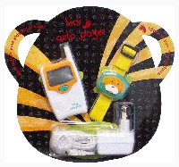 Беспроводной охранный комплект для контроля гуляющего ребенка (в отдельных случаях комплект можно использовать для контроля Ваших домашних животных: собак или кошек). Браслет-передатчик в форме игрушки на запястье ребенка и монитор с ЖК-дисплеем - для родителя.